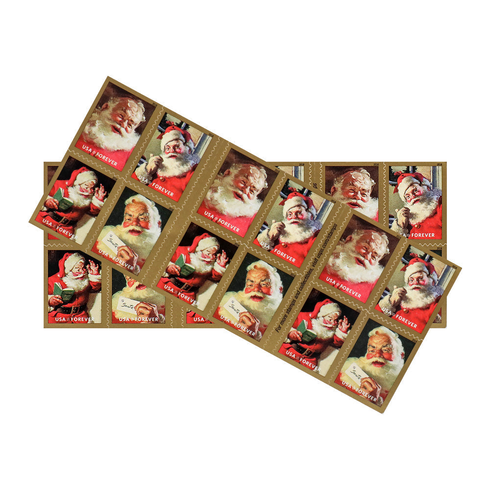 The Postal Service will release Sparkling Holidays, four stamps that feature close-up images of Santa Claus, in October 2018.